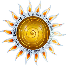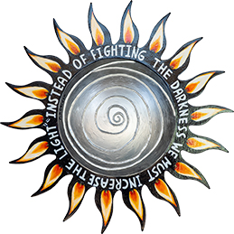 My piece “Sun of Many Lights” celebrates the harmonious interplay of light and darkness. It illustrates how light alleviates uncertainty, offering clarity and warmth, while darkness becomes a canvas for hope and transformation. The design features candle flames radiating from a spiral center, symbolizing the journey of life. This spiral, crafted from epoxy sculpt, also embodies the interconnectedness of all beings, suggesting that each person’s light contributes to a greater, ever-expanding whole.